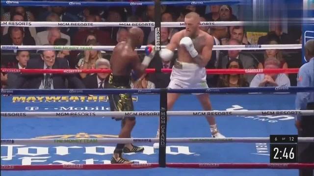 第6回合,梅威瑟开场即展开连击,比赛节奏彻底落入他的掌控。麦格雷戈后半段再次出现击打后脑的犯规动作,被裁判再次警告-18。梅威瑟的拳头开始变重、变快,前5回合麦格雷戈以51-40领先出拳命中数,但从第6回合起,梅威瑟的命中数彻底压制对手-23。10-9梅威瑟。