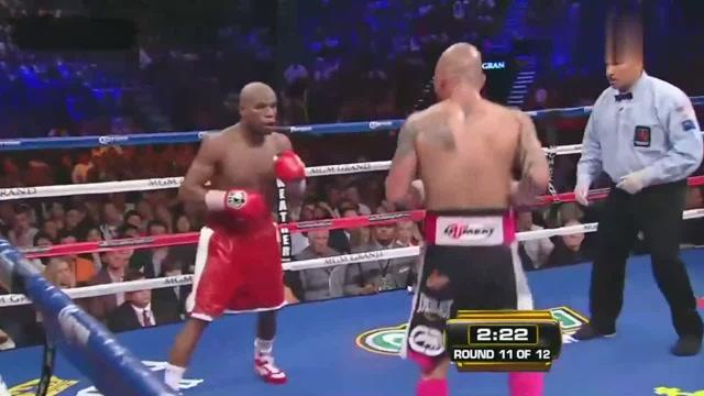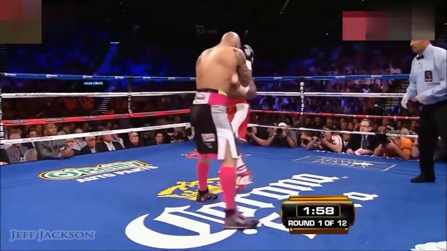第8-9回合: 梅威瑟继续执行既定战术,以精准的迎击和刺拳消耗库托。但库托的意志力远超预期,他顶着梅威瑟的拳头强行推进,多次将“漂亮男孩”逼入拳角展开肉搏。这是梅威瑟职业生涯中罕见的硬碰硬阶段——他没有像往常那样依赖防守反击,而是罕见地选择与库托正面交锋。两人的拳头在空中交错,每一次碰撞都让现场观众屏住呼吸。