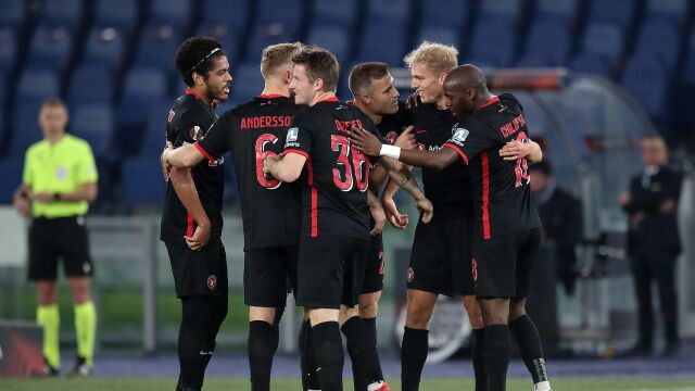 中日德兰的压迫并未持续太久。第16分钟,阿斯塔纳打出一次教科书般的边中配合。左后卫达夫罗诺夫沿边路衔枚疾进,在吸引两名防守球员后低平球扫向禁区中路,马林·托马斯心领神会,在点球点附近迎球推射,皮球贴着草皮窜入球门右下角。托马斯在完成射门后几乎没有多余庆祝,只是回头望了一眼教练席,随后被飞奔而来的队友扑倒。1-0,阿斯塔纳取得梦幻开局。